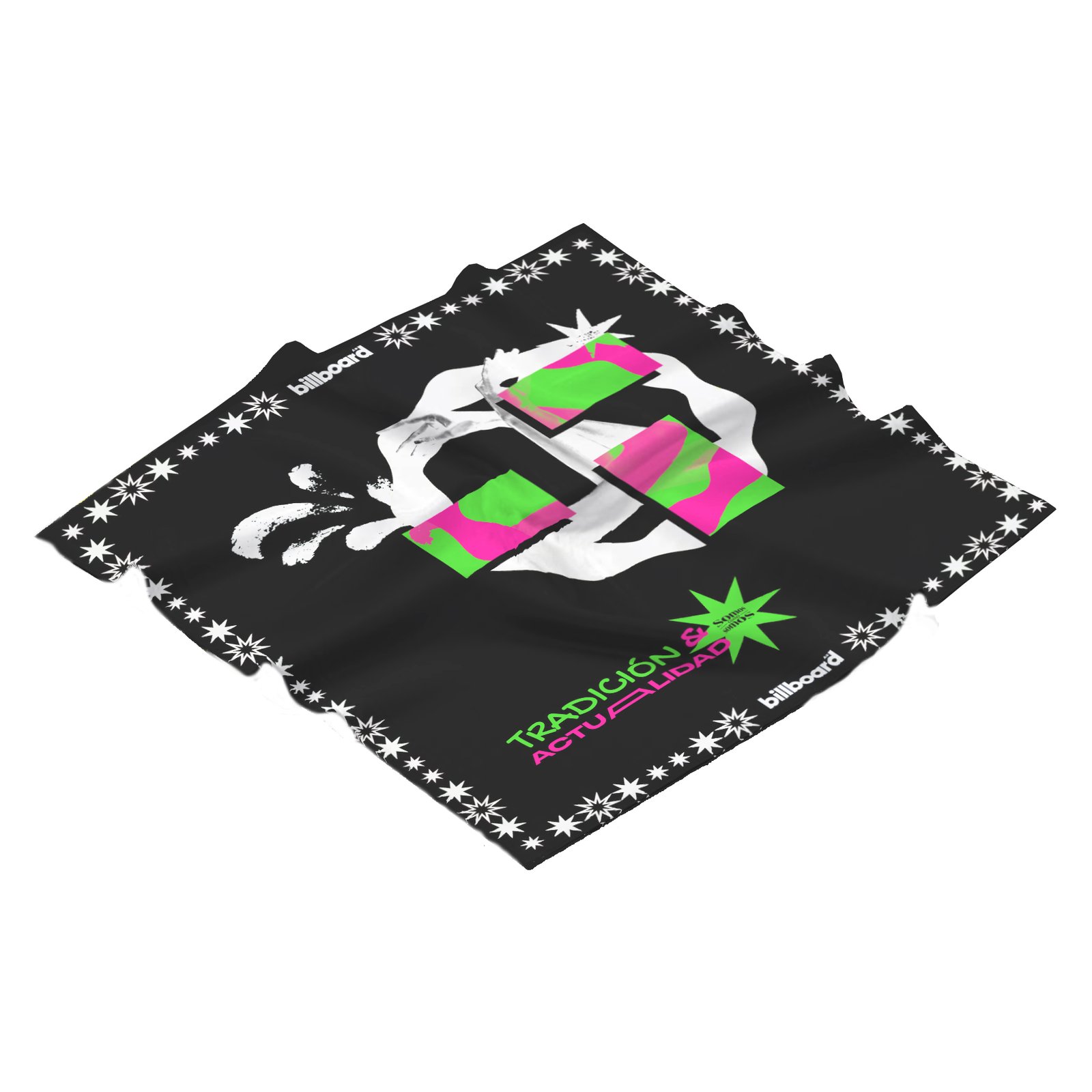 Pañuelo de Seda con estampa en ambas caras. La gráfica representa la Tradición y la Actualidad.